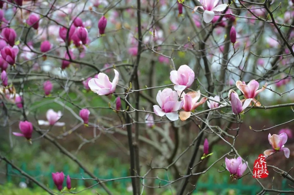 玉兰、樱花争相绽放