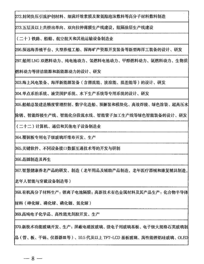 2022年版外商投资鼓励目录新增条目